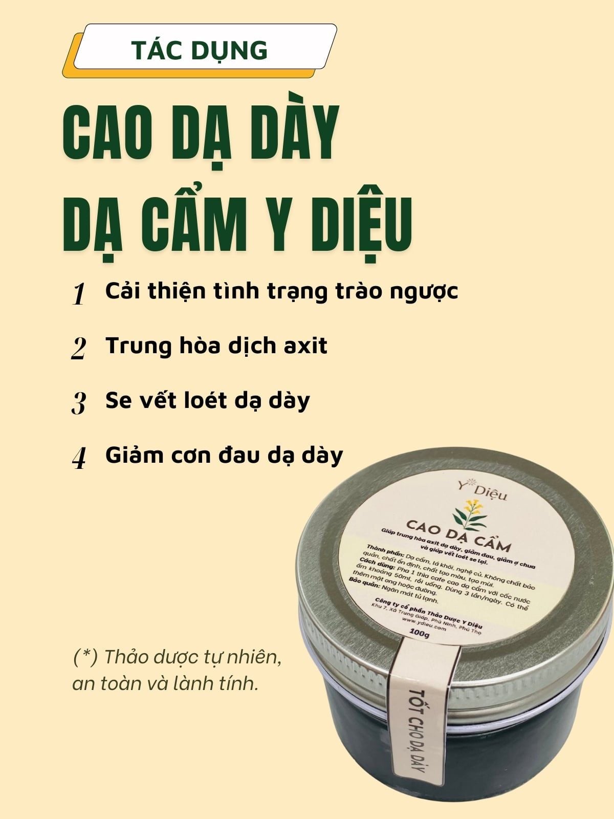 THÀNH PHẦN CỦA CAO DẠ CẨM Y DIỆU