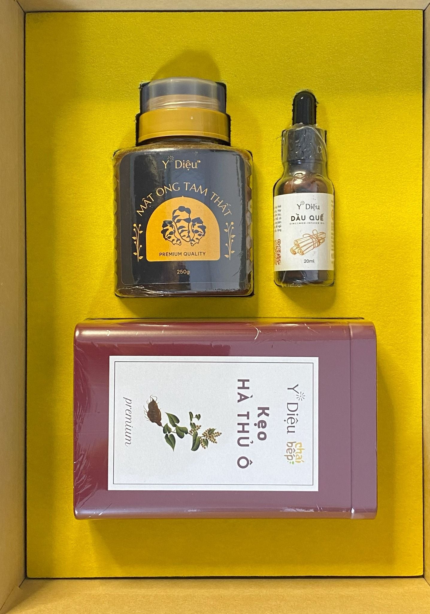 * Kẹo hà thủ ô - Premium thơm ngon hảo hạng là một sản phẩm mới hoàn toàn, được giới thiệu lần đầu tiên trên thị trường, đó là sự kết hợp đặc biệt của các thành phần thảo mộc được bào chế từ Y Diệu và xưởng làm kẹo dừa truyền thống Bến Tre, xưởng Chái Bếp.