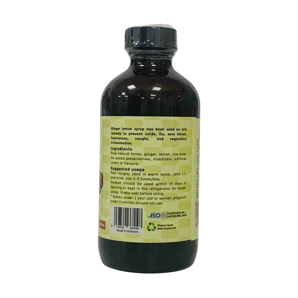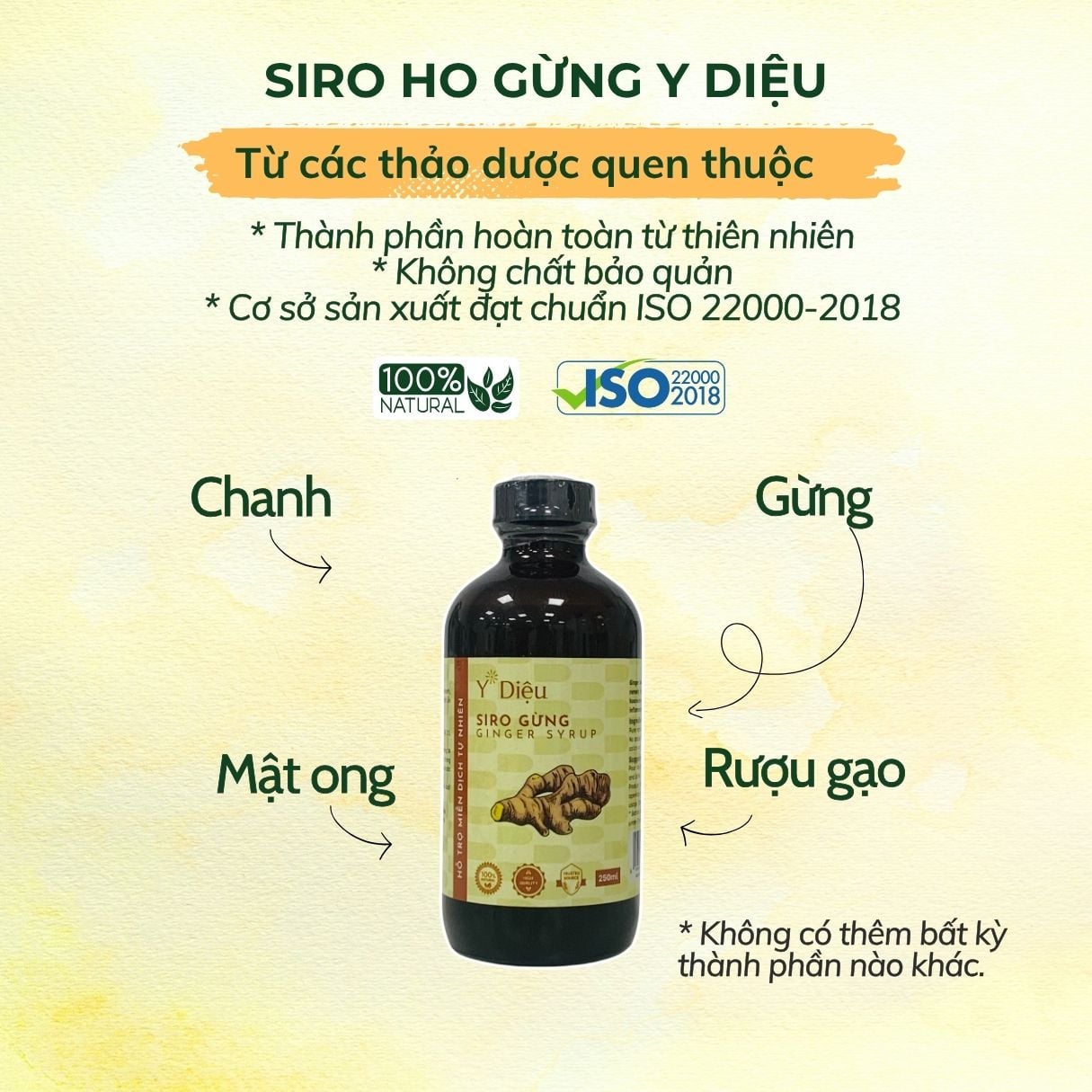 ✔ Mật ong tự nhiên nguyên chất, chanh, gừng, rượu gạo (<20%).